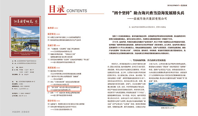 近日,海興集團(tuán)黨委書記、董事長楊亞成署名文章《“四個(gè)堅(jiān)持”助力海興勇當(dāng)沿海發(fā)展排頭兵》在《江蘇國資研究》2022年第六期“高質(zhì)發(fā)展”版塊刊發(fā)。《江2022-12-30 -