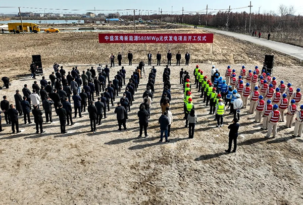 3月21日上午,中盛濱海新能源580MWp光伏發(fā)電項目在黃海新區(qū)濱海片區(qū)舉行開工儀式。2024-03-22