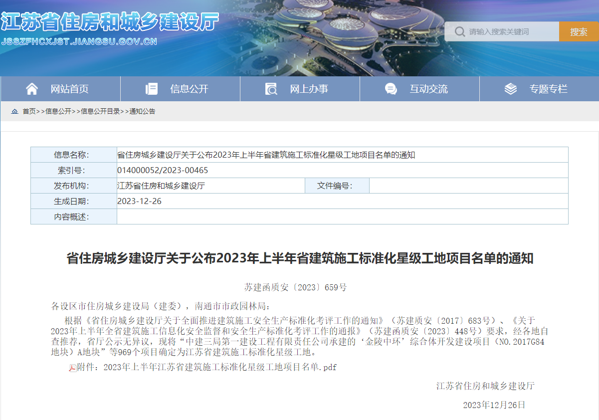 近日,江蘇省住房城鄉(xiāng)建設(shè)廳公布了2023年上半年省建筑施工標(biāo)準(zhǔn)化星級(jí)工地名單,由集團(tuán)港產(chǎn)公司下屬子公司鹽城市海興污水處理有限公司投資建設(shè)的黃海新區(qū)濱海片區(qū)水環(huán)境基礎(chǔ)設(shè)施2024-01-02