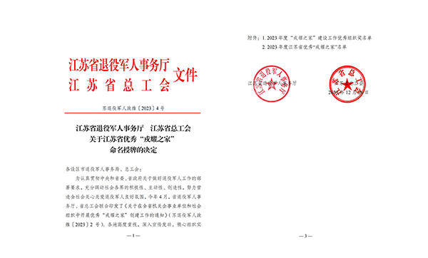 近日,江蘇省退役軍人事務(wù)廳、江蘇省總工會(huì)聯(lián)合發(fā)布了《關(guān)于優(yōu)秀“戎耀之家”命名授牌的決定》,鹽城市灌東鹽場發(fā)展有限公司被授予“2023年度江蘇省優(yōu)秀‘戎耀之家’”。2024-01-02 -