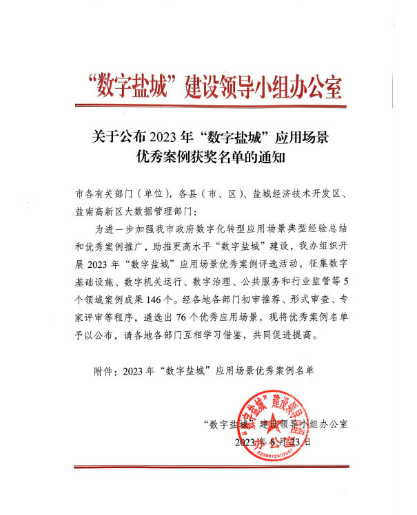 近日,“數(shù)字鹽城”建設(shè)領(lǐng)導(dǎo)小組辦公室公布了2023年“數(shù)字鹽城”應(yīng)用場景優(yōu)秀案例名單,海興集團(tuán)“智慧工地指揮中心”案例獲評(píng)一等獎(jiǎng)。2023-09-07 -